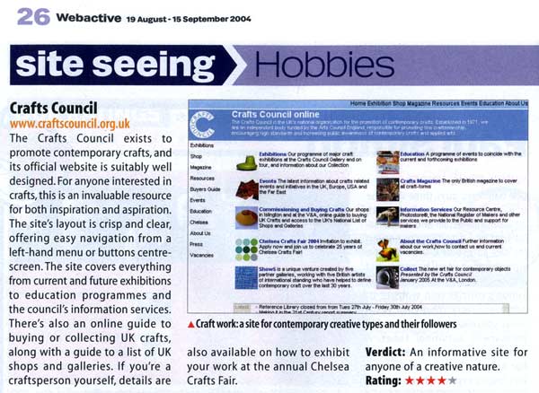 Webactive, Issue43 August / Sept 2004 - Review of Crafts Council Website.